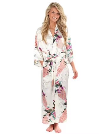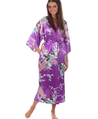 Brand New الأسود المرأة الحرير كيمونو الجلباب طويل مثير ثوب النوم خمر فستان سهرة مطبوعة زهرة حجم كبير S M L XL XXL XXXL A-045